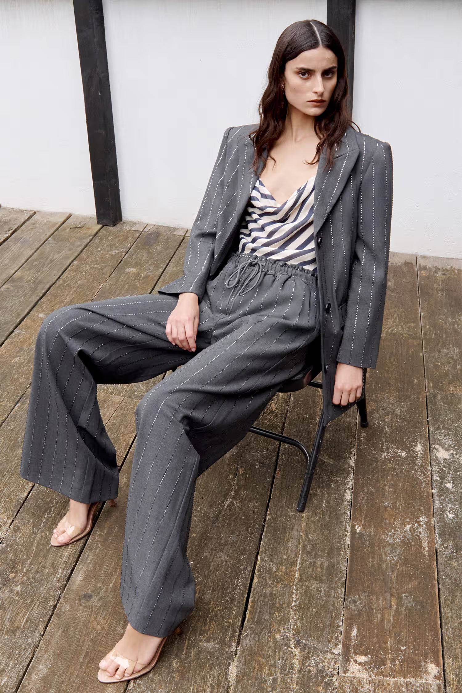 Grey Rhinestone Pinstripe Trousers