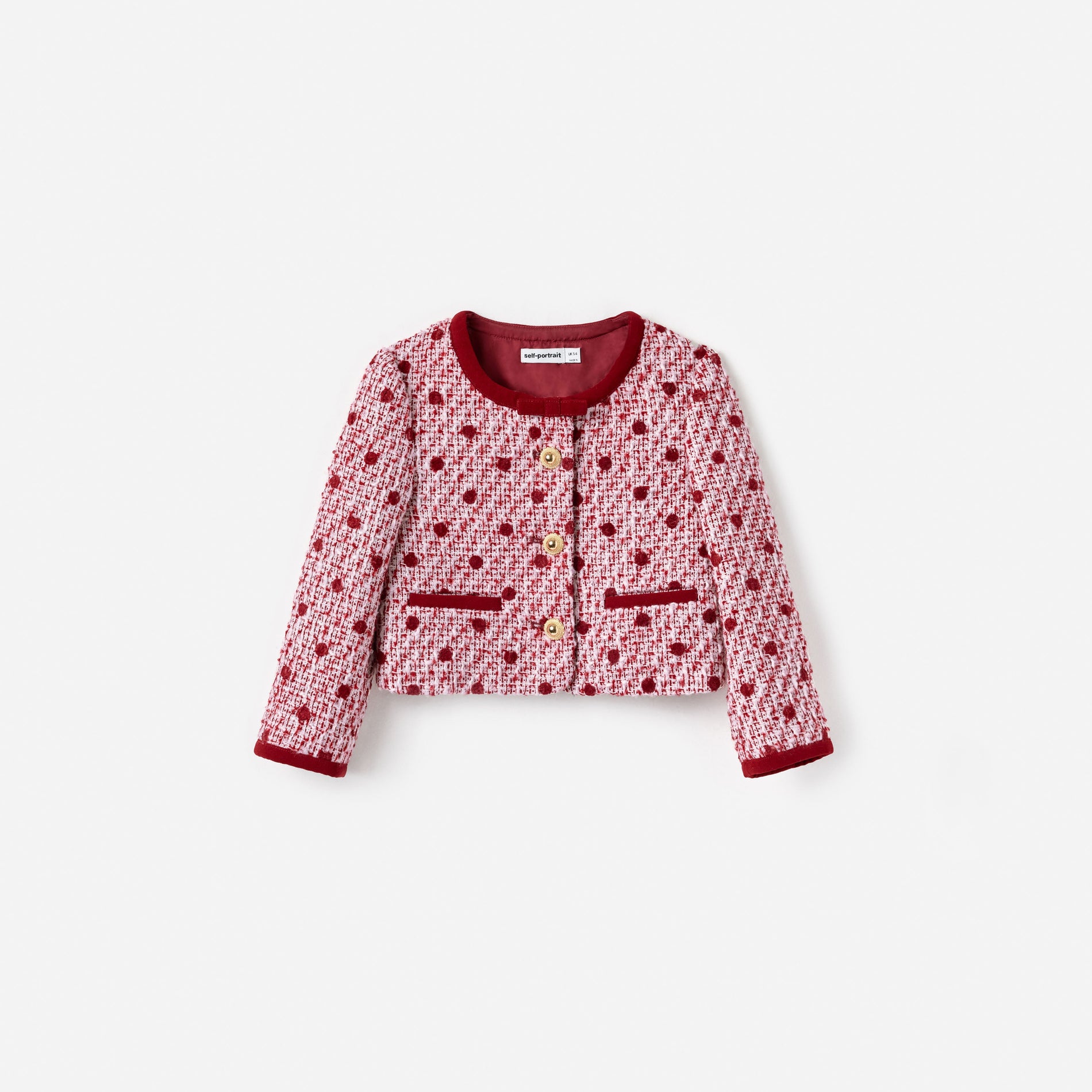 An exaggerated bubble hem makes this burgundy taffeta dress a sure-winner for special occasions. For extra charm, match its gold buttons with shining ballet flats and our glittering headband.