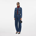 Crystal chain trims add irresistible shine to this cropped denim jacket. Wear over slinky slip dresses for a hot date or style its cropped length with high-waisted jeans for girls’ night out.