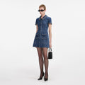 Crystal chain trims and sparkling buttons add extra glamour to the polished silhouette of this denim dress. Show off its mini hem with brogues by day and switch it up with heels for a hot date.