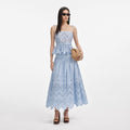 Light and airy, this blue cotton broderie top brings a breezy feel to summer dressing. Framed by scalloped edges and a belted peplum waist, flower motifs add chic detail to its shoulder straps.