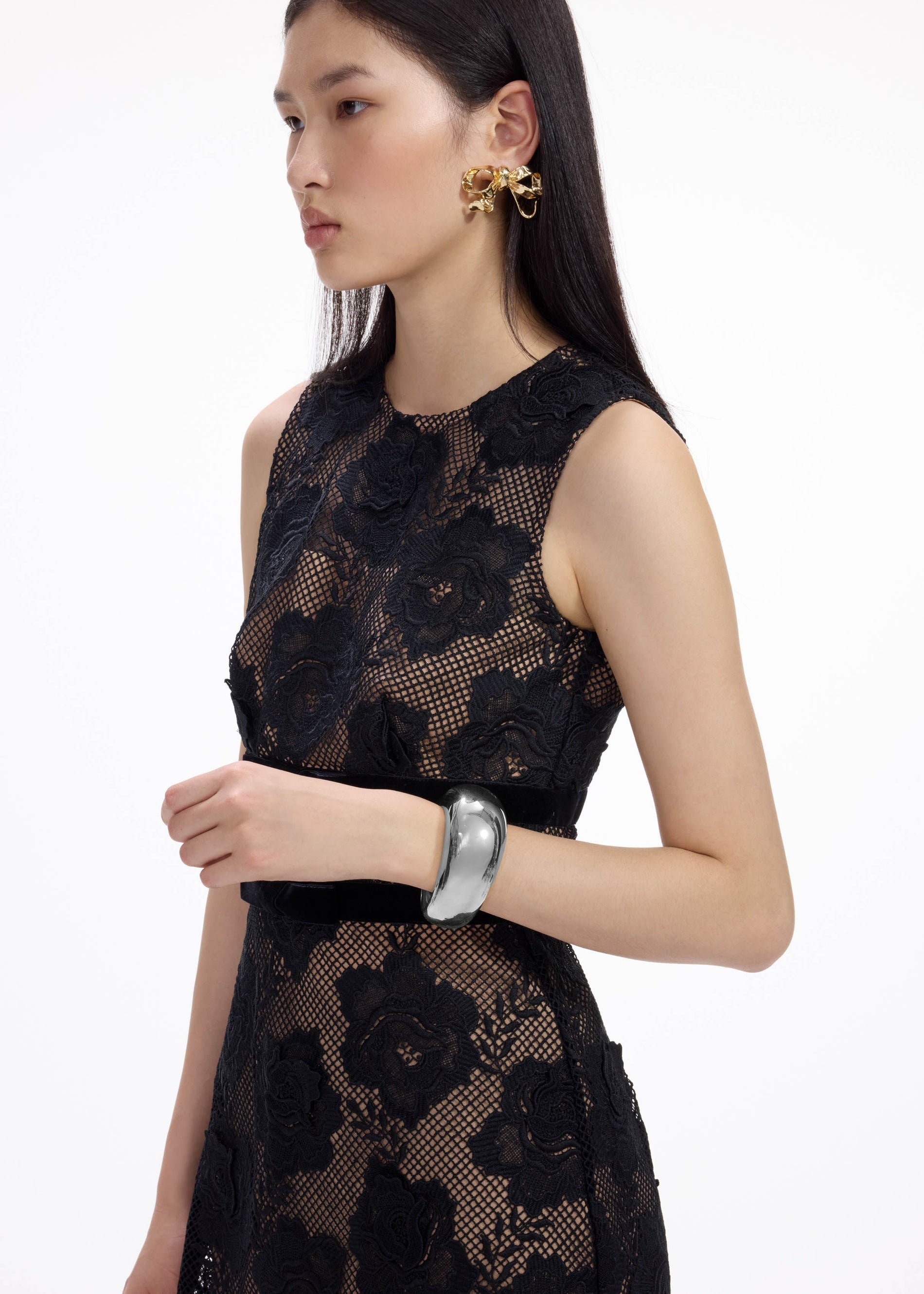 Crafted with burgundy rhinestone-studded mesh, this high octane midi pairs its high-shine feel with a sleek silhouette, and an edgy cut-out to match. Add our statement earrings for extra drama.