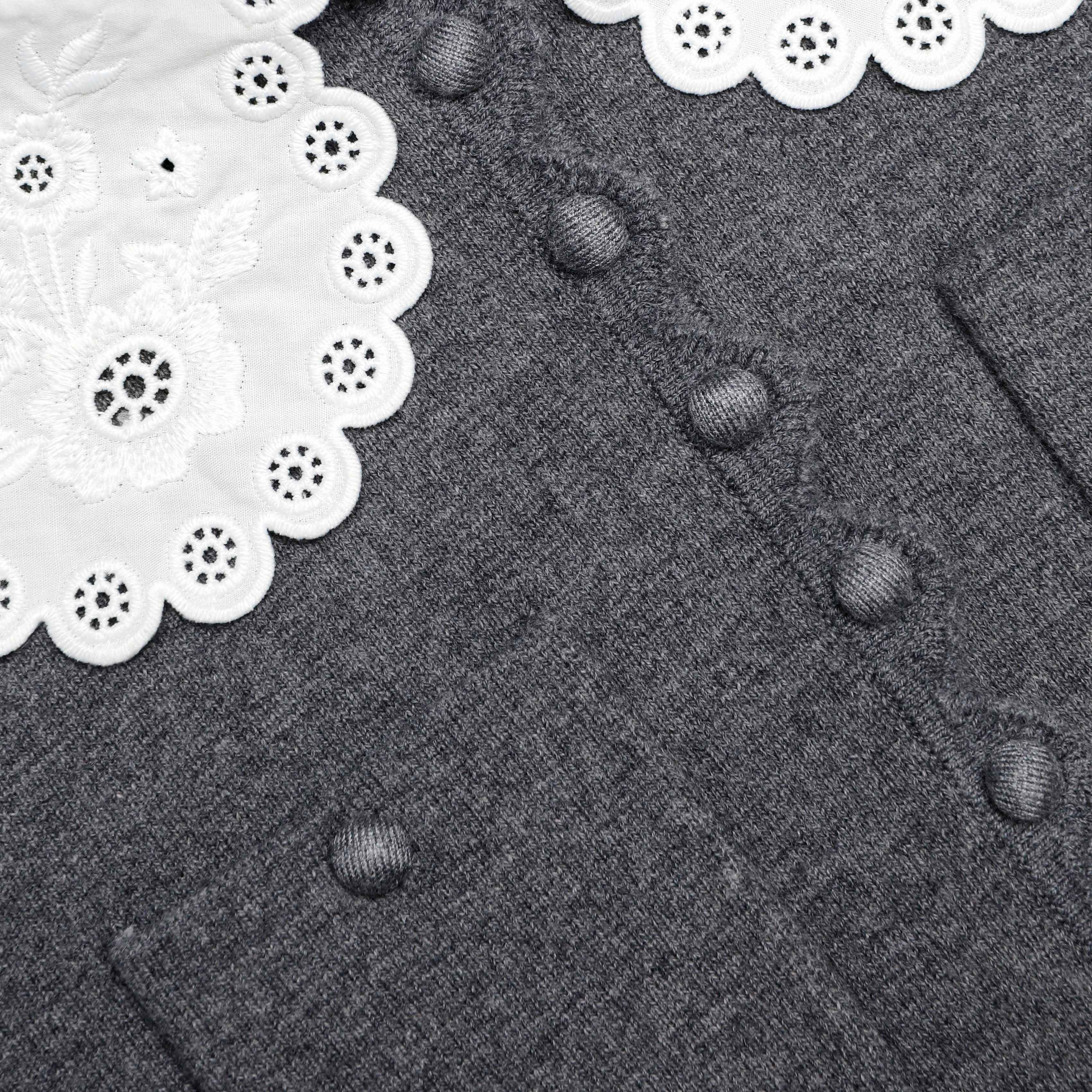 A contrast collar in broderie anglaise lends charming detail to this cotton cashmere knit dress. Fitted to the form, pair its mini hem with brogues by day and switch to heels for after-work drinks.