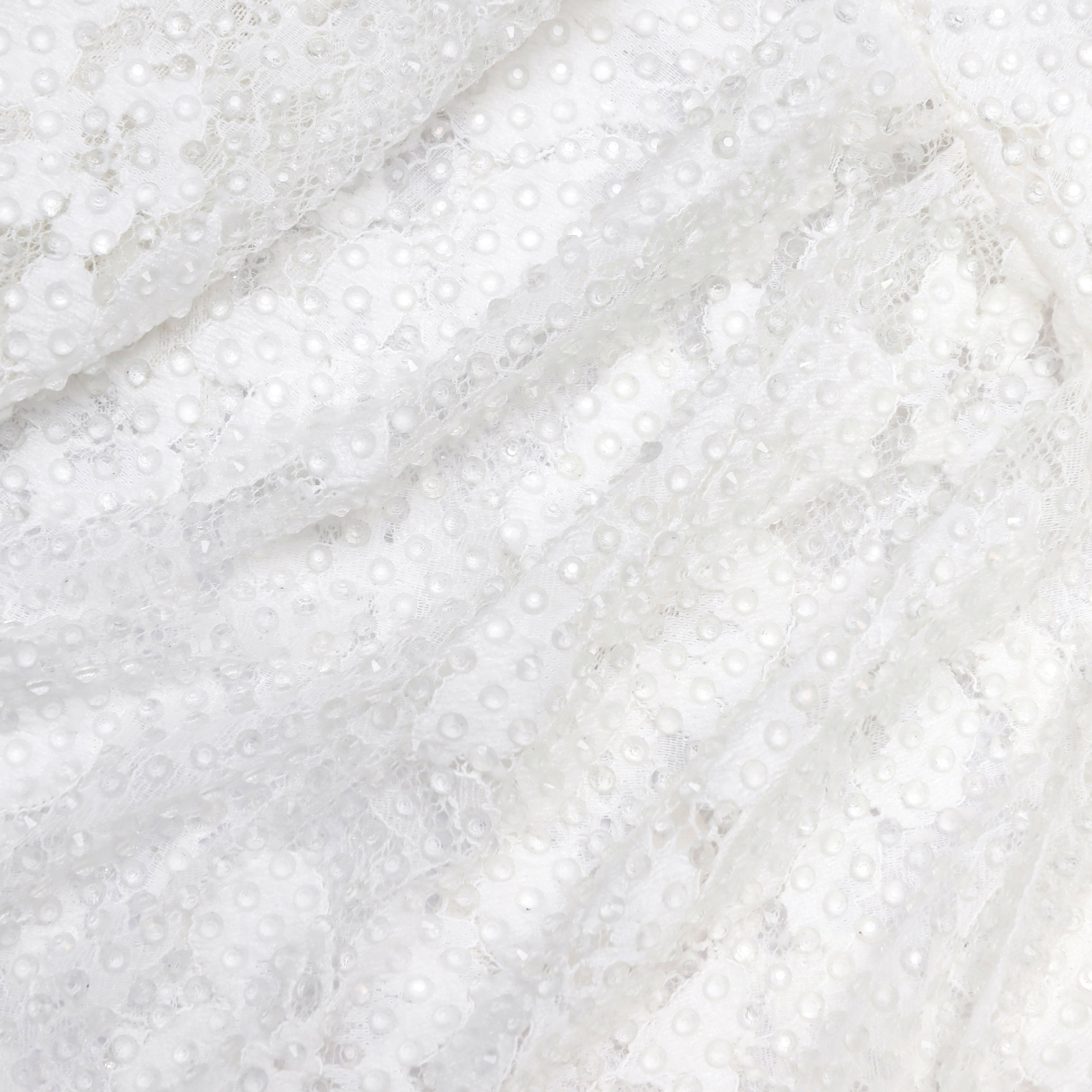 Vintage accents and fluid draping meet irresistible shine in this polka dot mini dress. Cut from rhinestone-embellished lace, pair with stilettoes to show off its attention grabbing bow detail.
