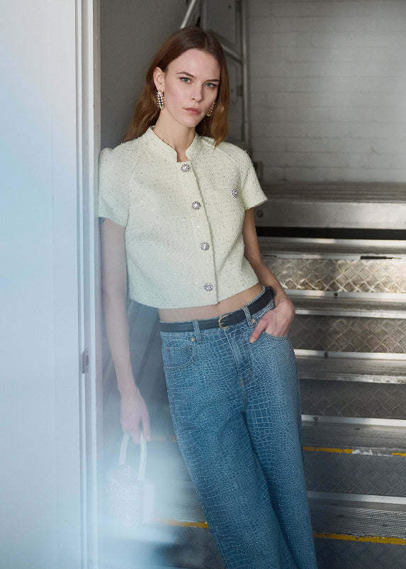 - Gold button detailing
